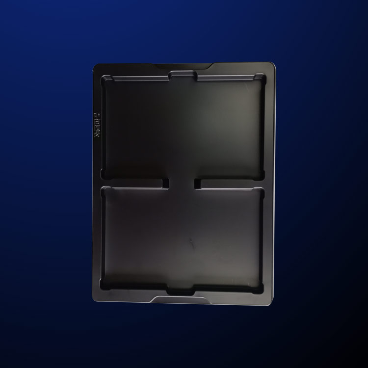 是一采用特殊材料的吸塑托盘,该材料表面的电阻值小于10的11次方欧姆。主要用于电子、IT产品的吸塑托盘。